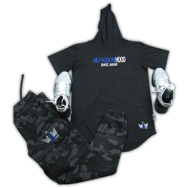 L, XL, XXL black camo bottoms with kingdomhood Patch.